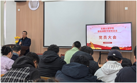 3月5日,基础课教学部党总支召开党员大会,大会由基础课教学部党总支副书记陆启义同志主持,党总支全体教师参会。